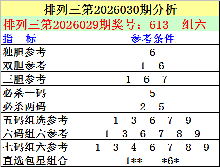 4.本期独胆参考:6。