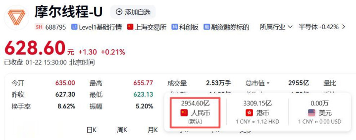 摩尔线程当下的市值接近3000亿元,该公司专注于GPU芯片的研发,其产品在游戏、图形渲染等领域有着广泛的应用前景;沐曦股份市值达到2400亿元,它致力于为数据中心和人工智能应用提供高性能的芯片解决方案。