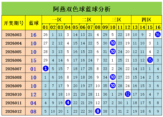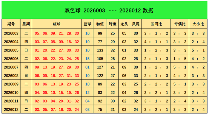 上期回顾:双色球第2026012期开出奖号:红球03、05、07、16、20、24;蓝球08,其中红球三区比为3:2:1,奇偶比3:3,大小比为2:4,蓝球开出2路号码08。